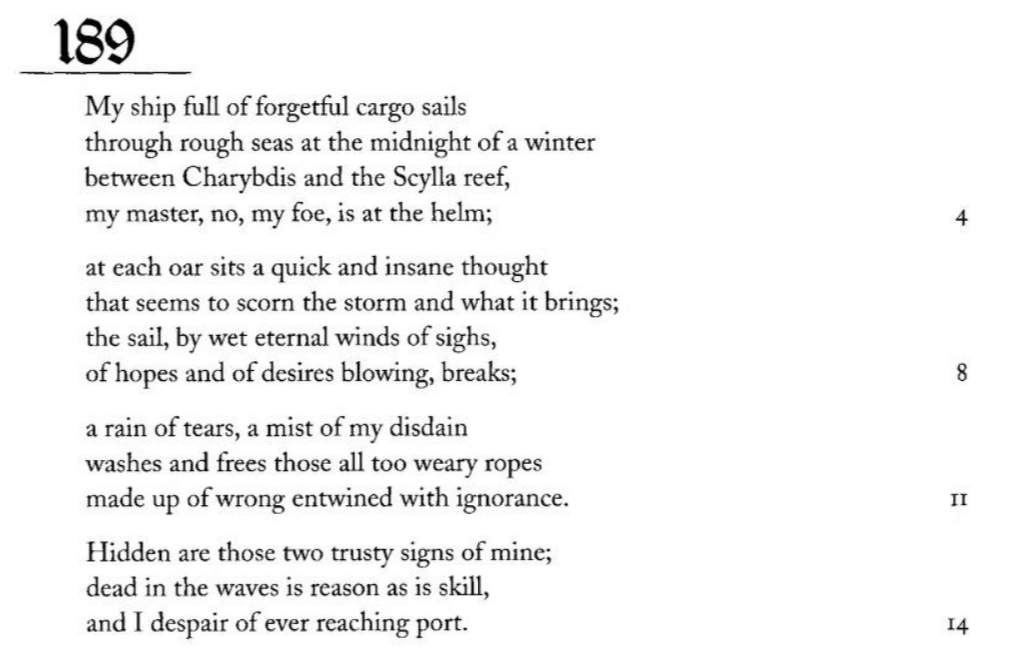 4. Read Sir Thomas Wyatt's translation of rime 189. Why is it better the modern translation above?