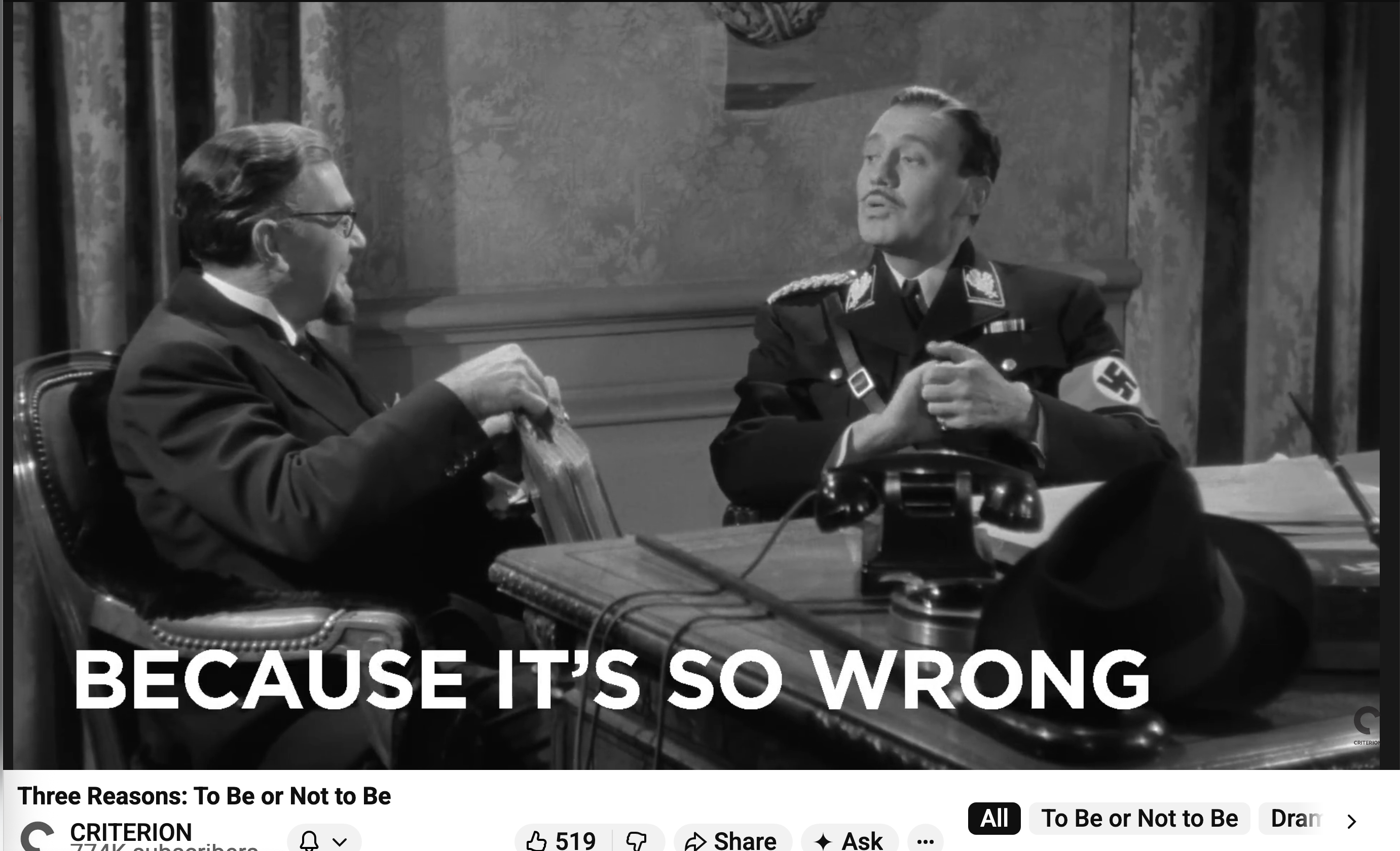 To Be or Not to Be (dir. Ernst Lubitsch, 1941)