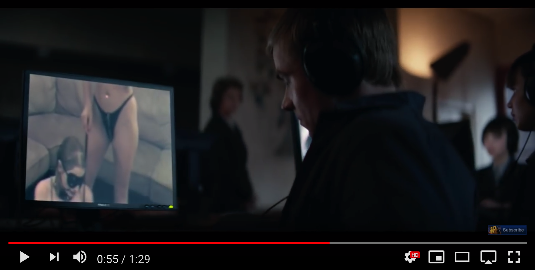 "seduce" Medium Shot 21 (the word "seduce" matches the guy watching surveillance footage of softcore porn on his computer at work.)