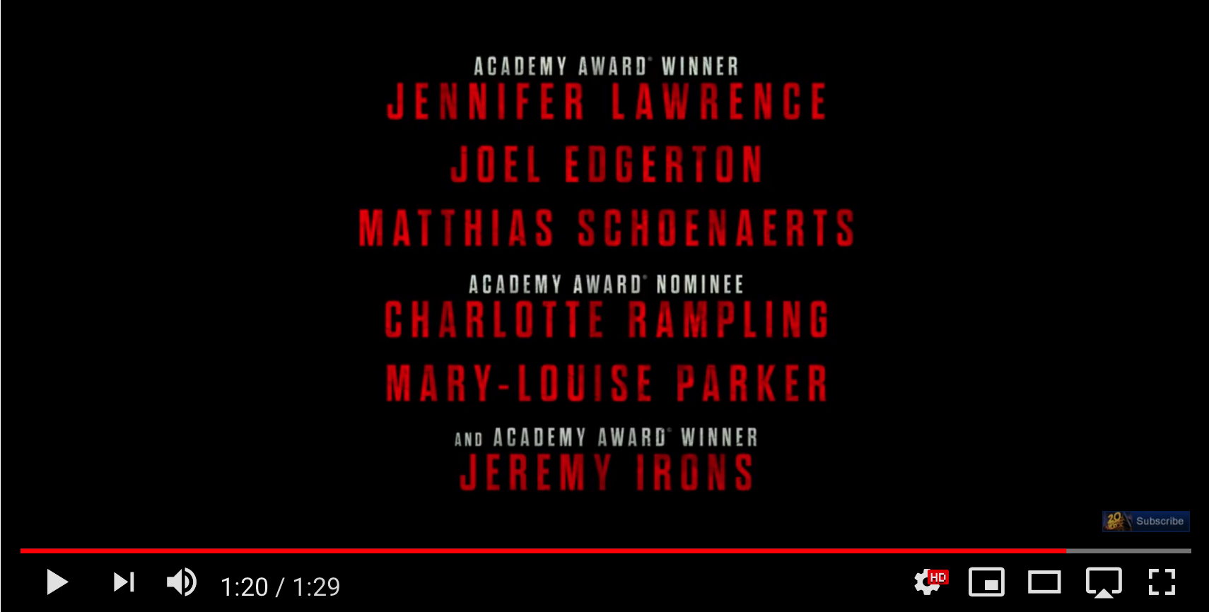 Red Sparrow (dir. Francis Lawrence, 2018) https://www.youtube.com/watch?v=L5KYCsWhado