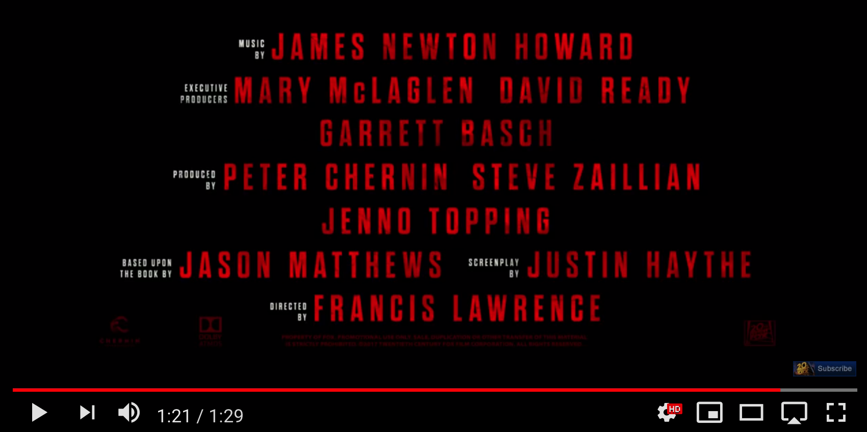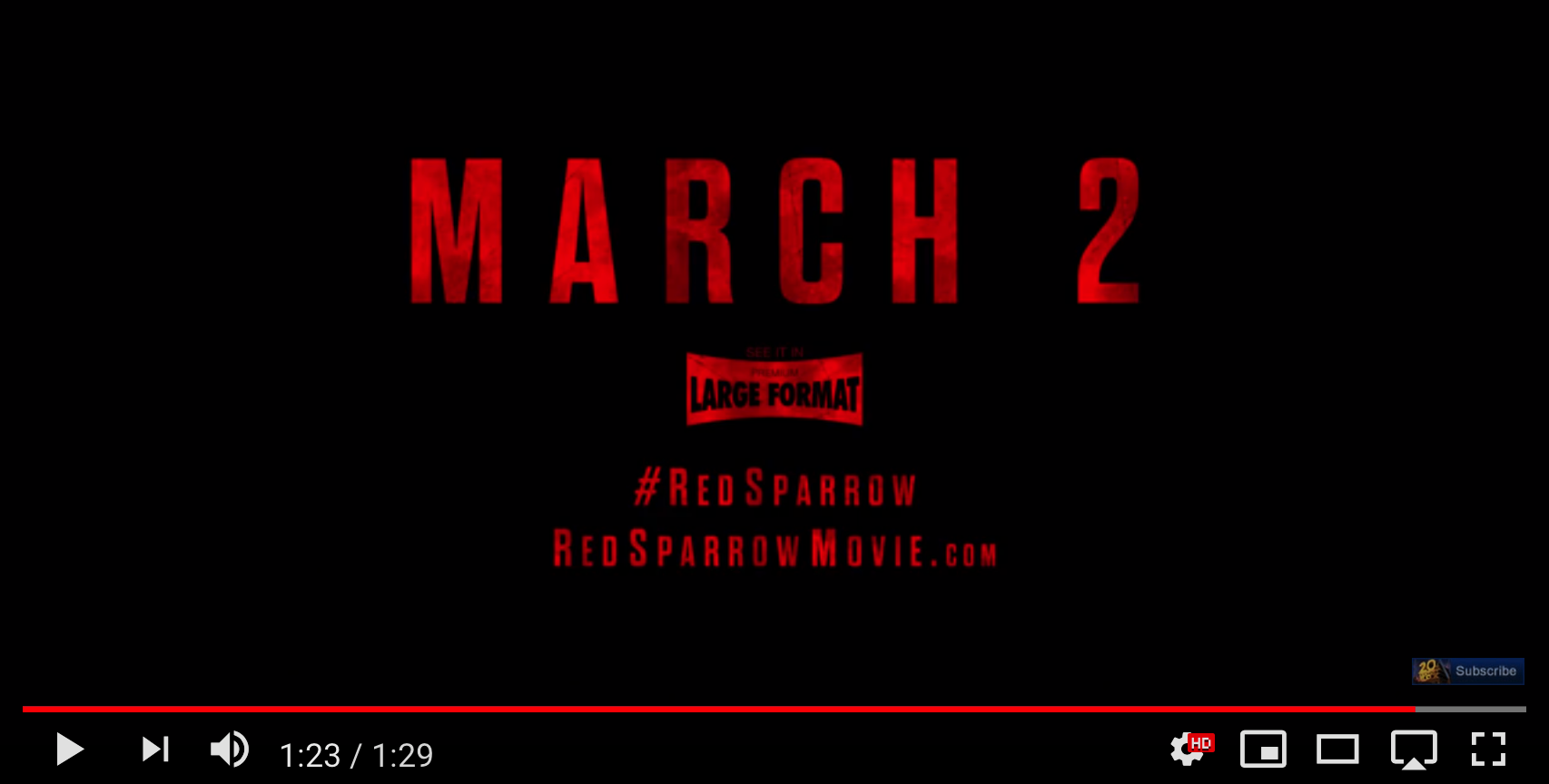 1. Title of Film Trailer: Red Sparrow (dir. Francis Lawrence, 2018)