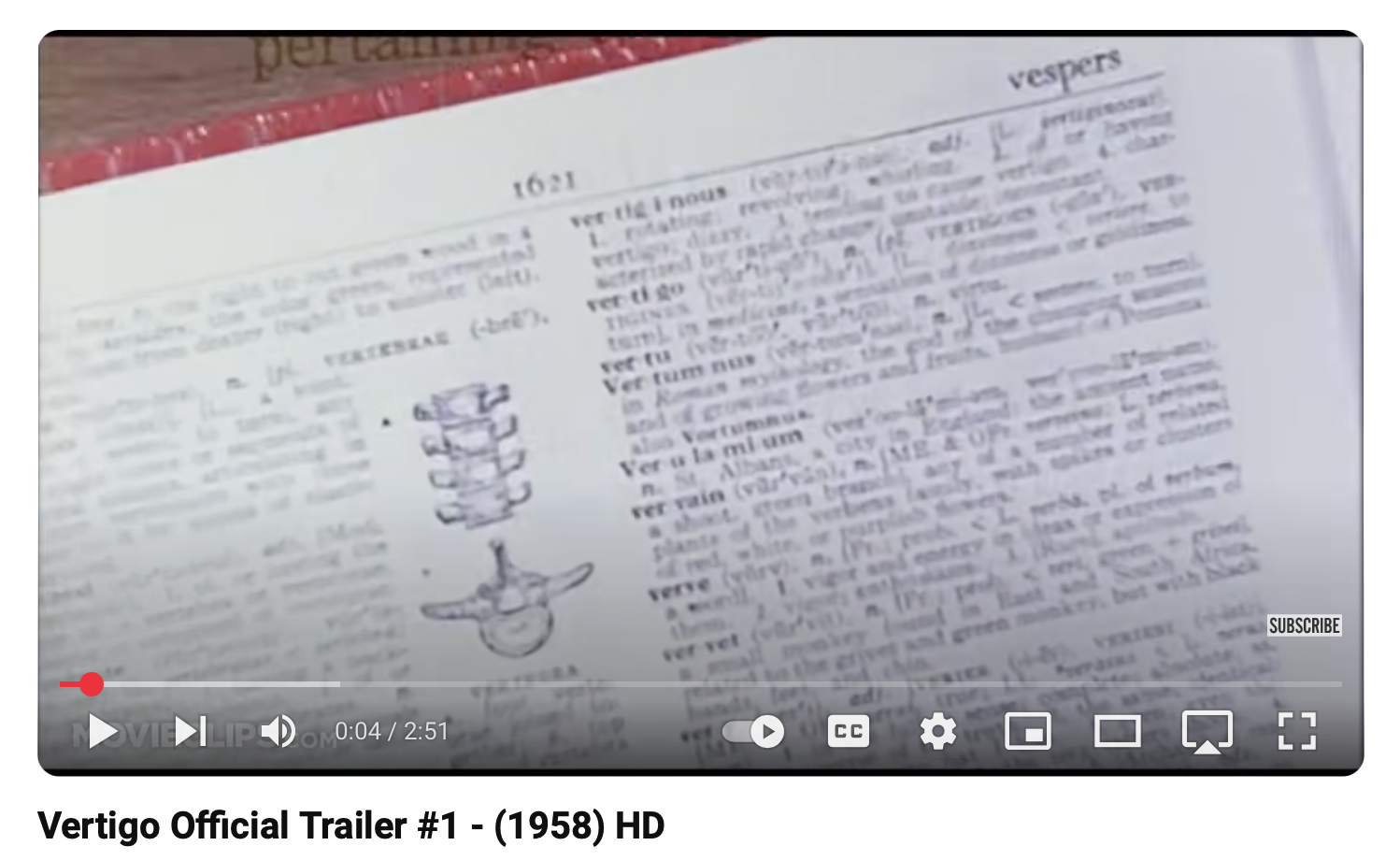 Vertigo Twelve Second Dictionary Definition of "Vertigo"